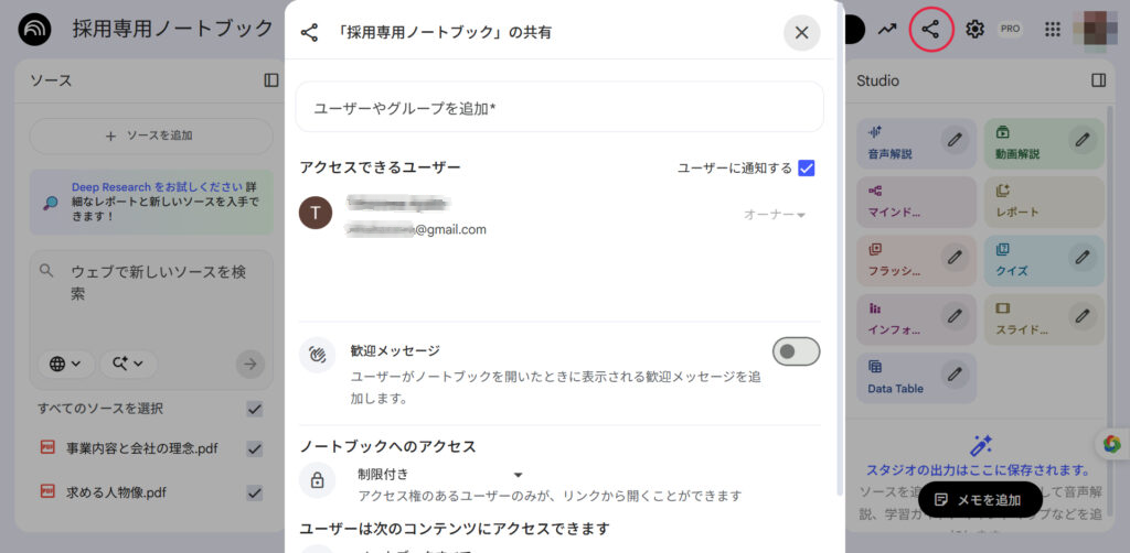 NotebookLMでは、