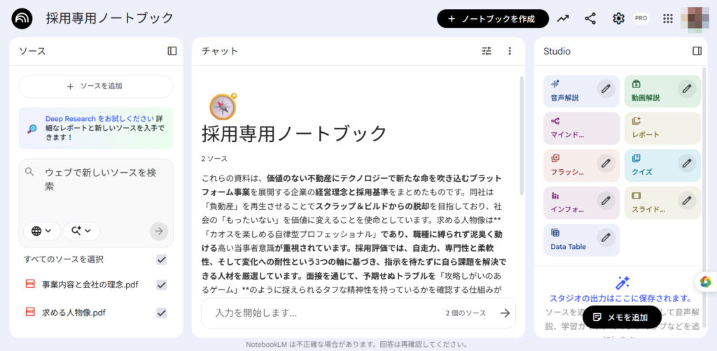 そこがNotebookLMの強みでございます。