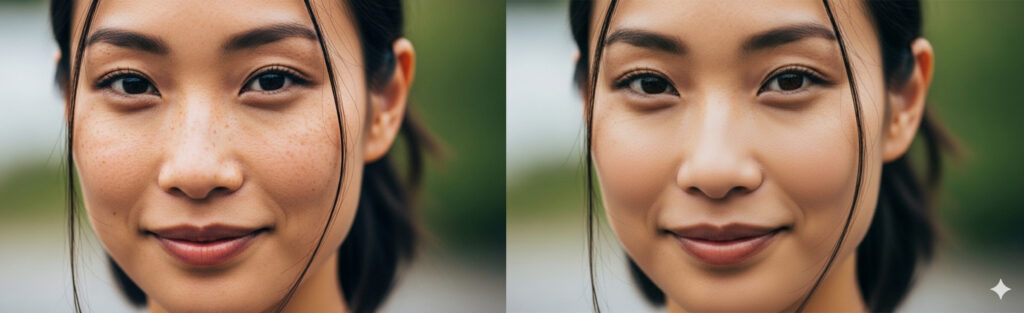 ※必要に応じて「肌をもう少しなめらかにしてください」「頬や鼻の小さなシミやそばかすを消してください」などのプロンプトを追加してください。