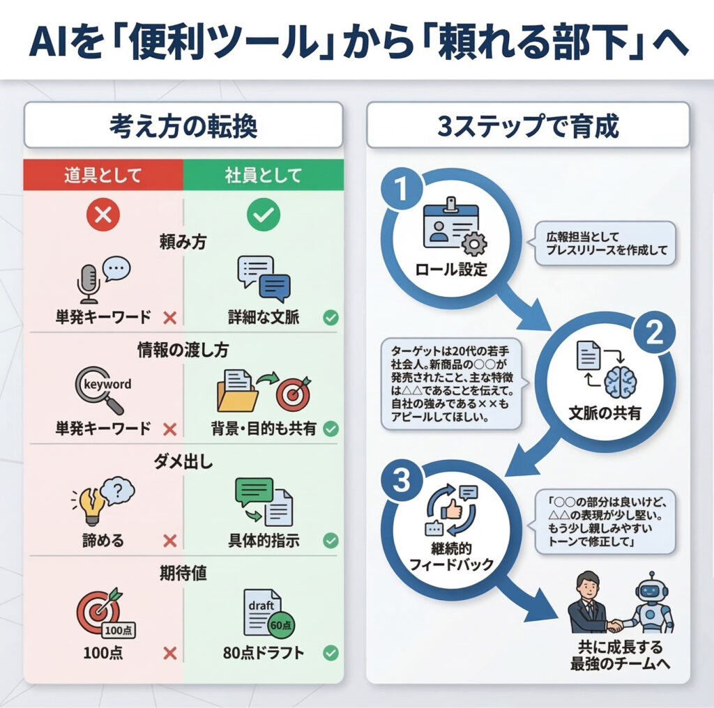 そんな使い方に変えるだけで、AIは強力な仕事パートナーになります。