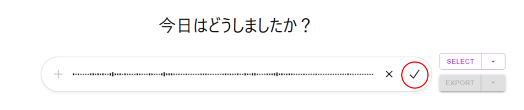 パソコンの場合、下の✓マークをタップすると音声入力が終了し、文字に変換(書き起こし)してくれます。