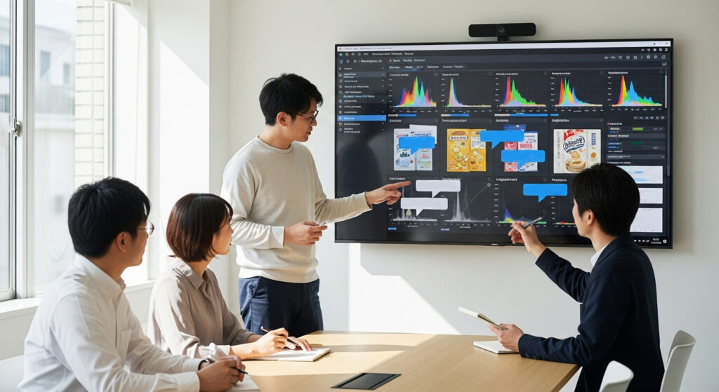 デザインの方向性を決める際、「なんとなく」ではなく「売れている競合のデザインにはこういう共通点がある」という根拠を持って話せるため、社内の合意形成がスムーズになります。