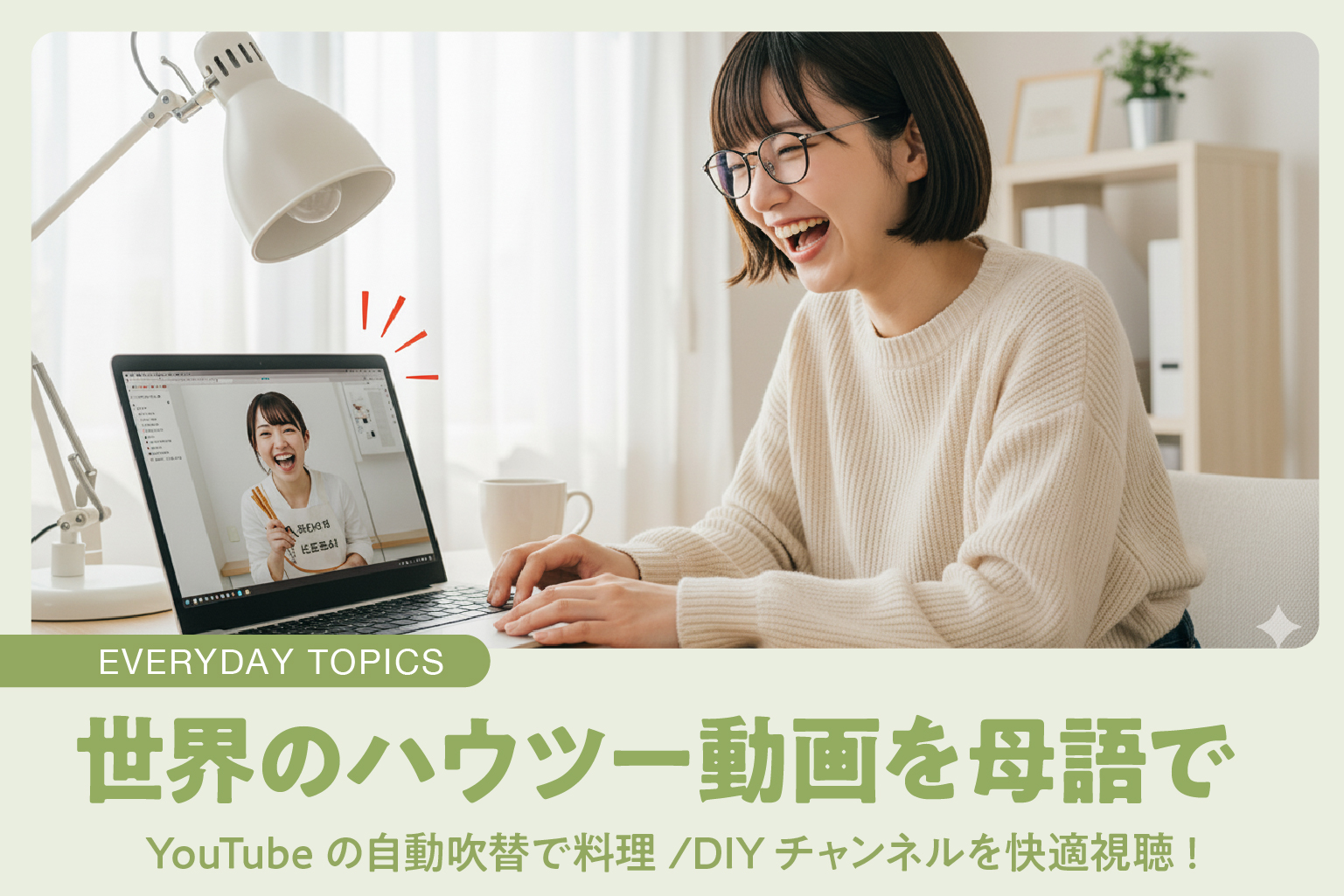 YouTubeの“自動吹替(Auto Dubbing)”や“多言語音声トラック”を使えば、母語で視聴できる動画が増えています。設定も簡単ですよ。